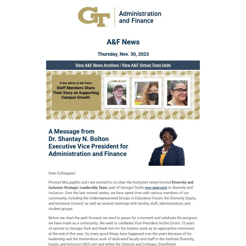 We thank each member of this community who has been part of these discussions thus far, including the members of the DEI Council. That feedback has been invaluable to us. This is a big change for Georgia Tech, and we are committed to full transparency and open dialogue as the new strategic leadership team comes together and the work continues.
