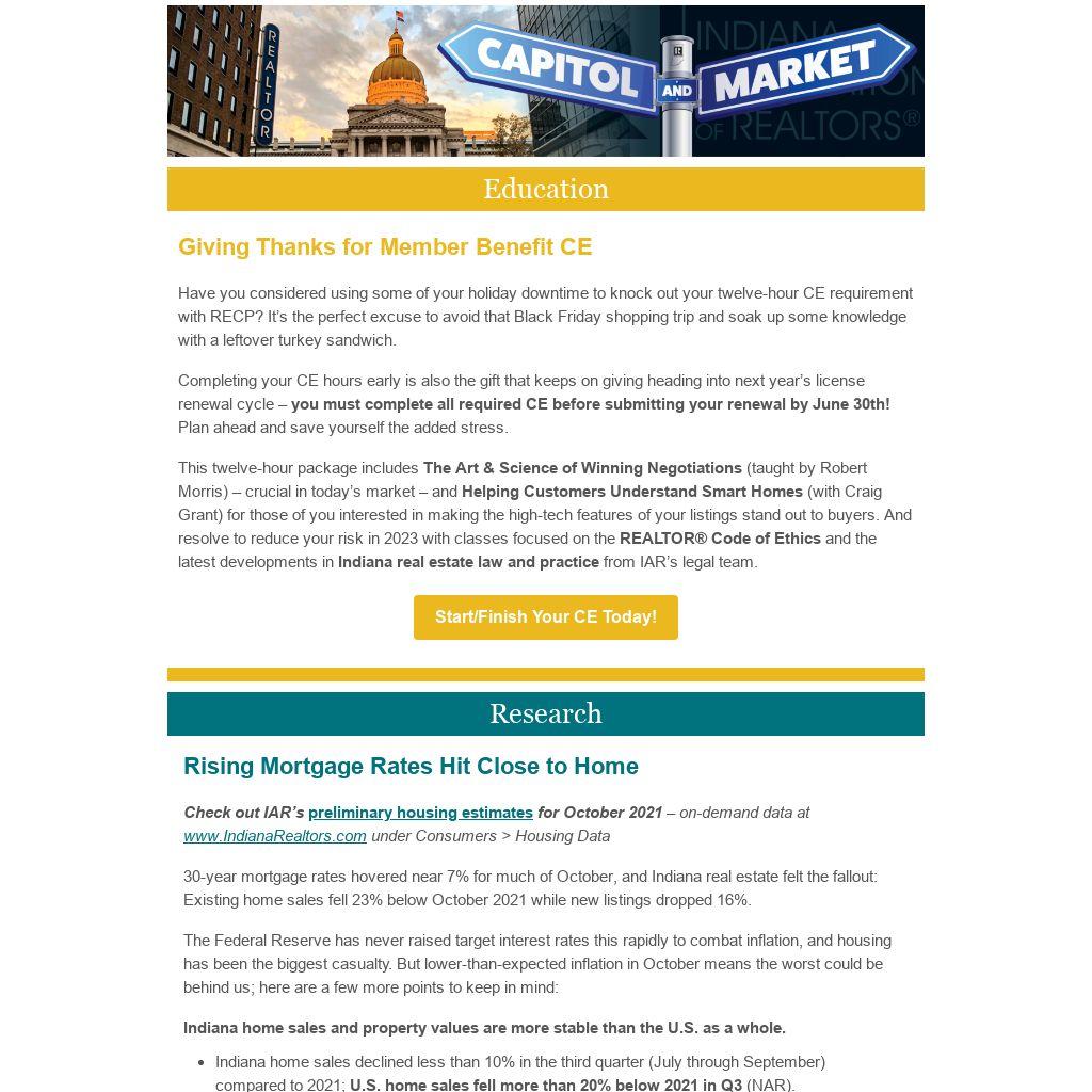 Add news@indianarealtors.com to your address book and be sure to let your local association know when you change email addresses (that’s where we get your contact). Thank you for reading and thank you for your membership.