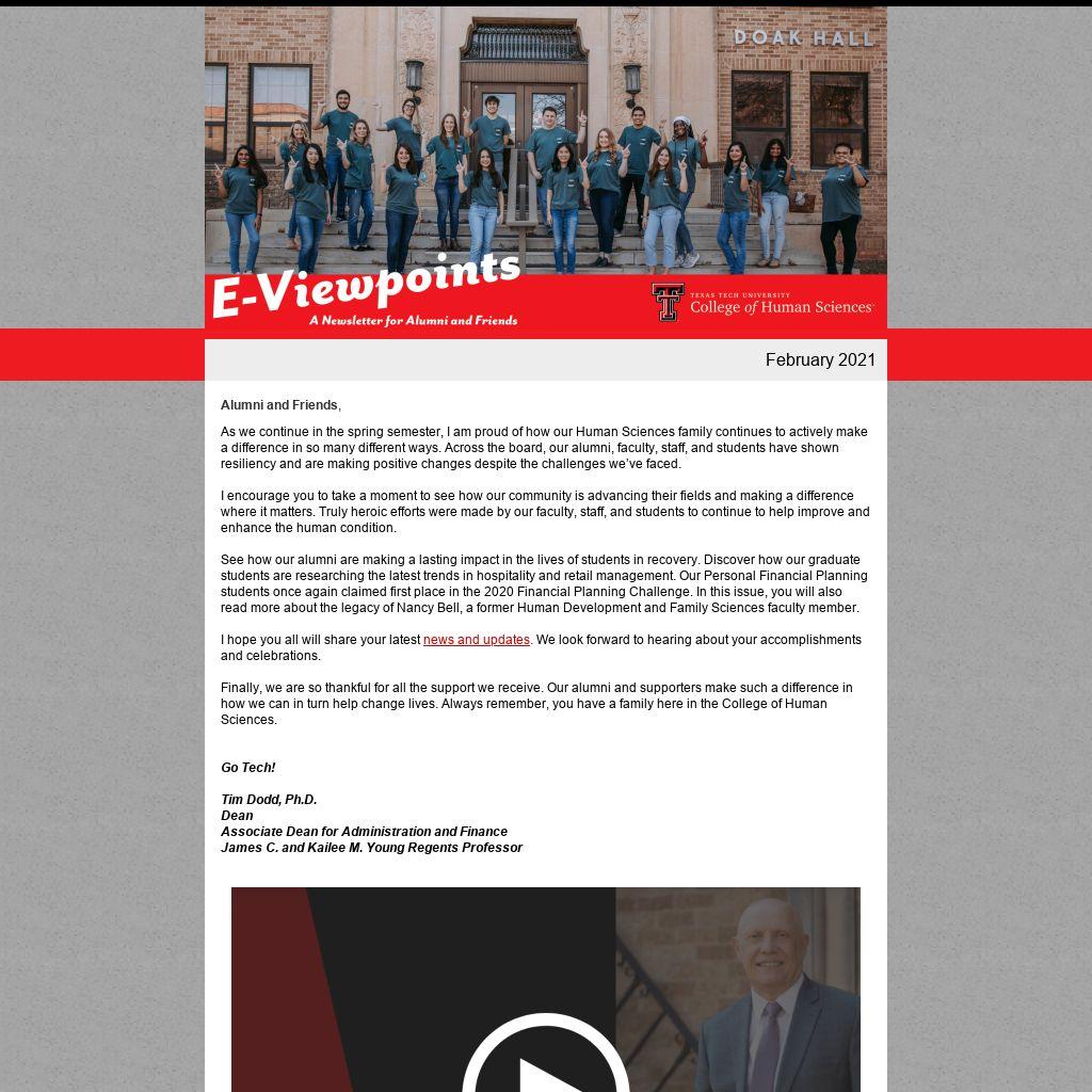 As we continue in the spring semester, I am proud of how our Human Sciences family continues to actively make a difference in so many different ways. Across the board, our alumni, faculty, staff, and students have shown resiliency and are making positive changes despite the challenges we’ve faced.