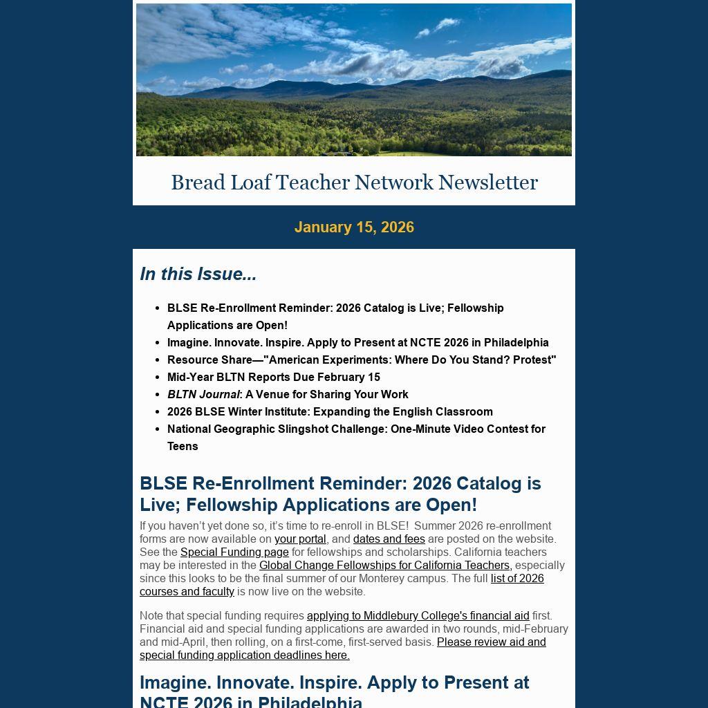 Bread Loaf Teacher Network Newsletter |