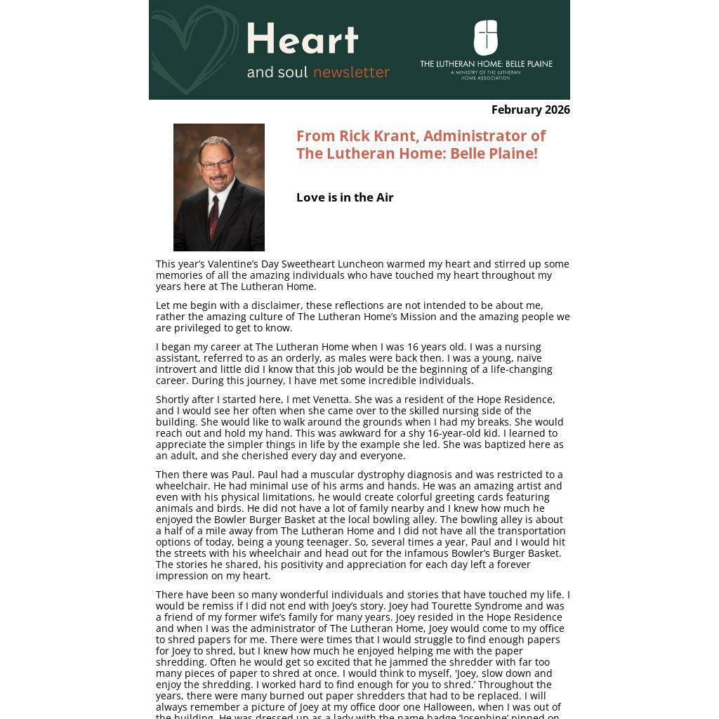 This year’s Valentine’s Day Sweetheart Luncheon warmed my heart and stirred up some memories of all the amazing individuals who have touched my heart throughout my years here at The Lutheran Home.