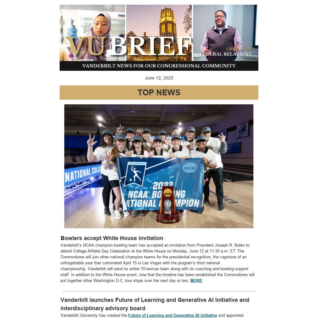 VUbrief summarizes Vanderbilt news items to inform our Congressional community of developments at the university. Visit our website for past issues of VUbrief. Vanderbilt University Office of Federal Relations (202) 216-4361