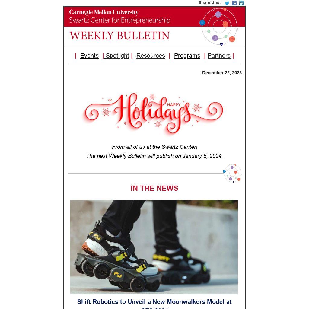 From all of us at the Swartz Center! The next Weekly Bulletin will publish on January 5, 2024.
