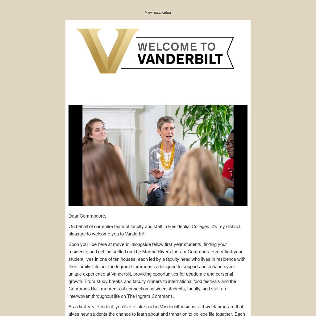 On behalf of our entire team of faculty and staff in Residential Colleges, it’s my distinct pleasure to welcome you to Vanderbilt!
