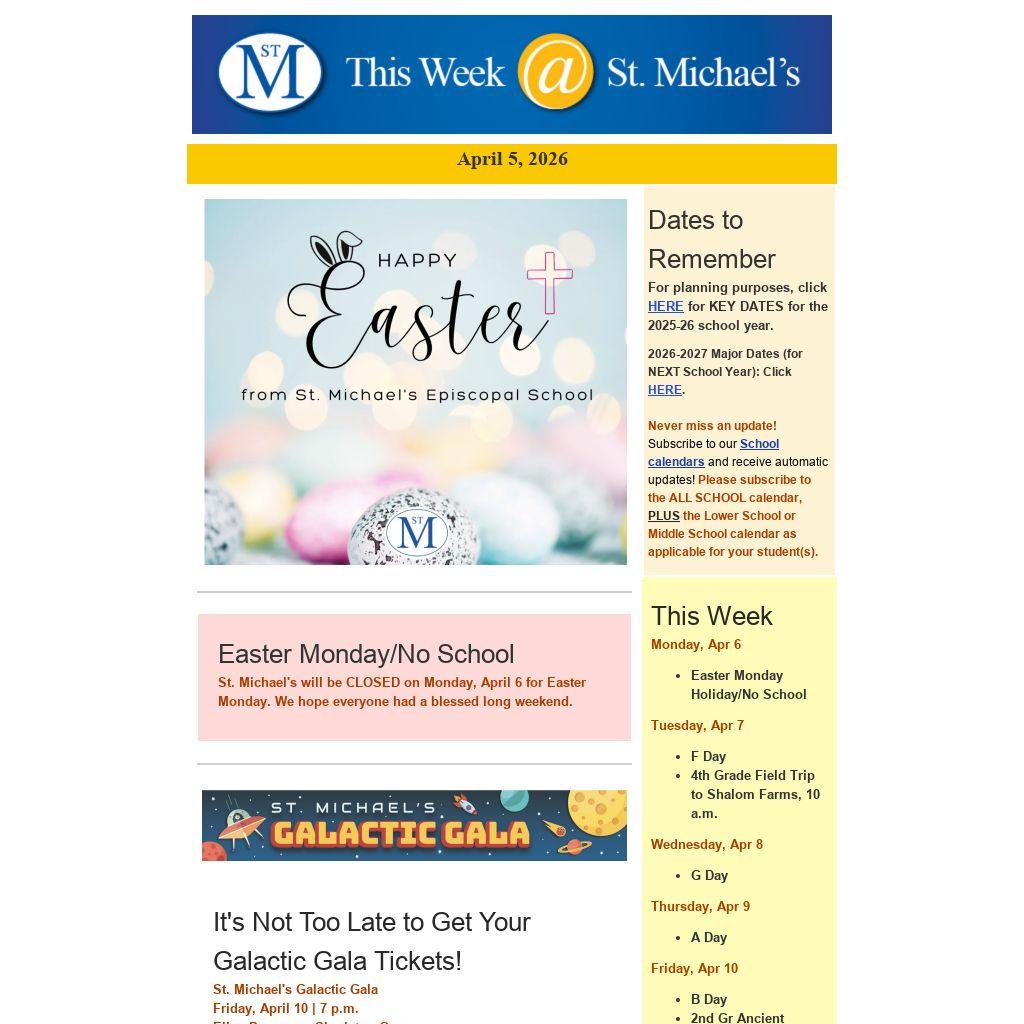 | It's Not Too Late to Get Your Galactic Gala Tickets! St. Michael's Galactic Gala Friday, April 10 | 7 p.m. Ellen Passmore Singleton Gym Dinner | Silent Auction | Live Auction