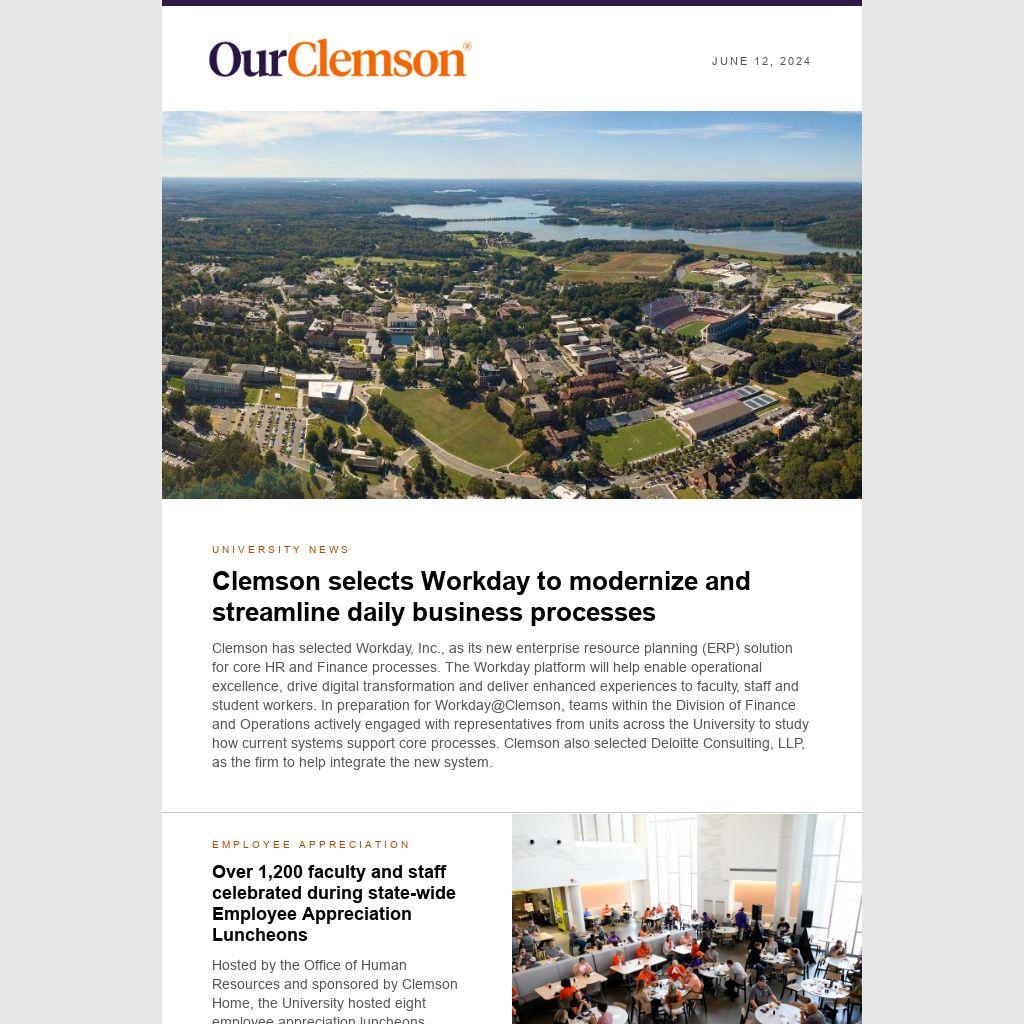 Clemson has selected Workday, Inc., as its new enterprise resource planning (ERP) solution for core HR and Finance processes. The Workday platform will help enable operational excellence, drive digital transformation and deliver enhanced experiences to faculty, staff and student workers. In preparation for Workday@Clemson, teams within the Division of Finance and Operations actively engaged with representatives from units across the University to study how current systems support core processes. Clemson also selected Deloitte Consulting, LLP, as the firm to help integrate the new system.
