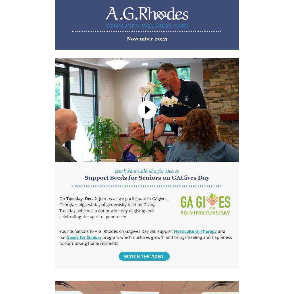 Your donations to A.G. Rhodes on GAgives Day will support Horticultural Therapy and our Seeds for Seniors program which nurtures growth and brings healing and happiness to our nursing home residents.