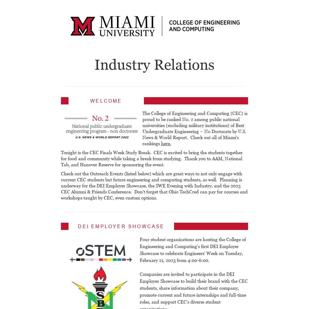 - Companies are invited to set up tables to connect with the competitors and their parents and talk about what engineering and computing scientists do at your company. There is no charge to participate in this event. You just need to signup with the Outreach Office.