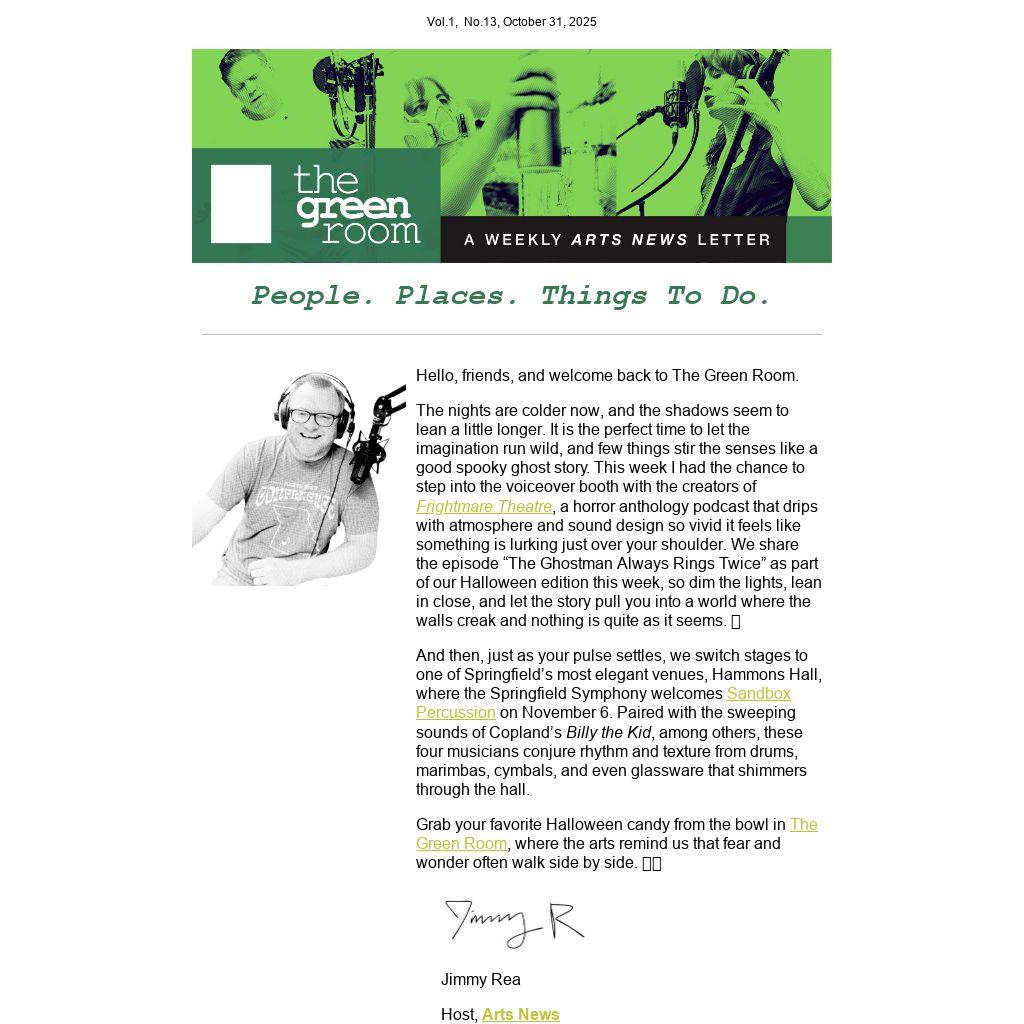 👉Got a story, event, or artist I should know about? Share your arts and music tips with The Green Room, and help us shine a spotlight on the creative pulse of the Ozarks! You can email them to me at JRea@MissouriState.edu.