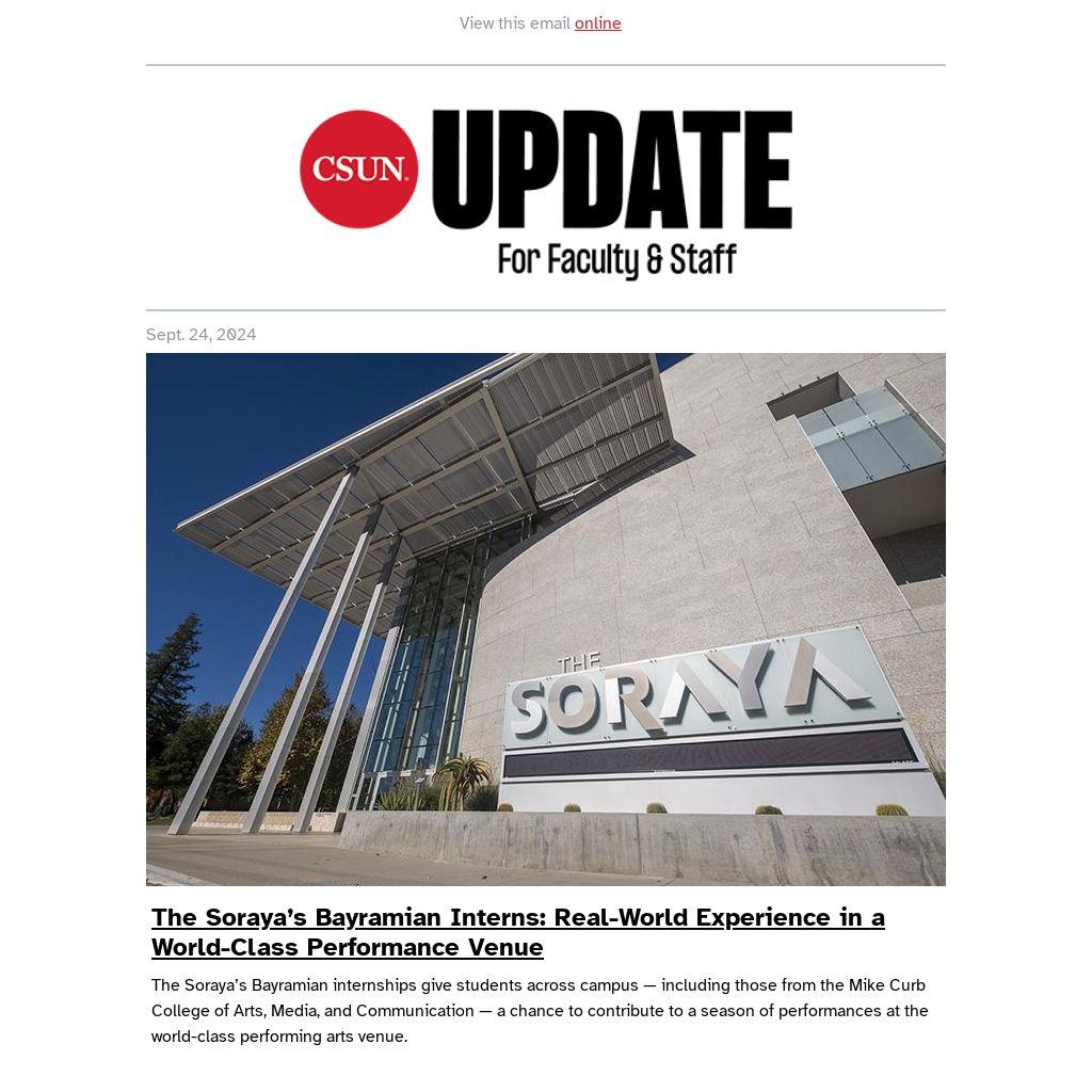 The Soraya’s Bayramian internships give students across campus — including those from the Mike Curb College of Arts, Media, and Communication — a chance to contribute to a season of performances at the world-class performing arts venue.