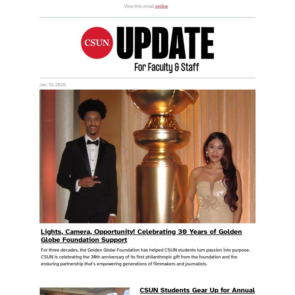 For three decades, the Golden Globe Foundation has helped CSUN students turn passion into purpose. CSUN is celebrating the 30th anniversary of its first philanthropic gift from the foundation and the enduring partnership that’s empowering generations of filmmakers and journalists.