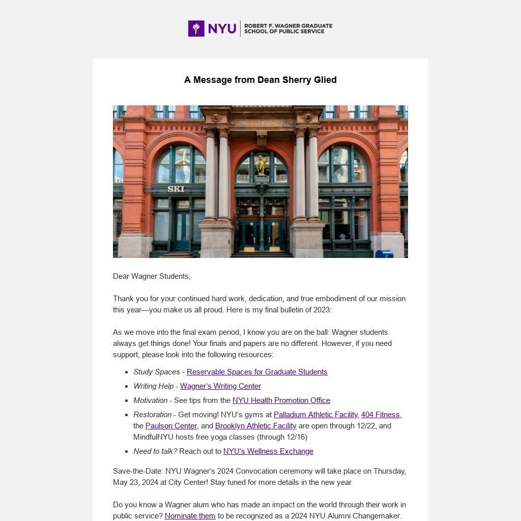 Wagner’s website. If you have any questions about anything in these monthly bulletins, please contact NYU Wagner Chief of Staff,