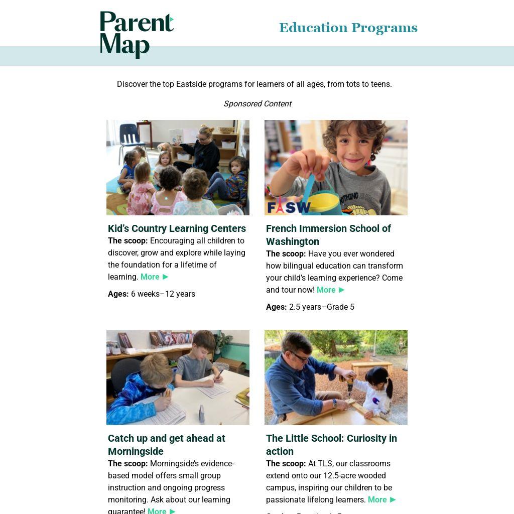 The scoop: Bellevue Children’s Academy offers an unparalleled educational journey for pre-K through fourth grade students. Schedule a tour to learn more! More ►