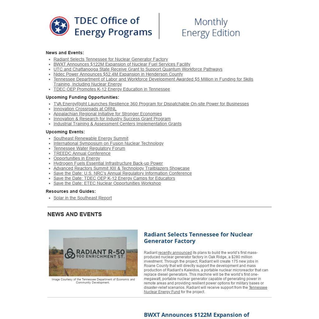 | Radiant Selects Tennessee for Nuclear Generator Factory |