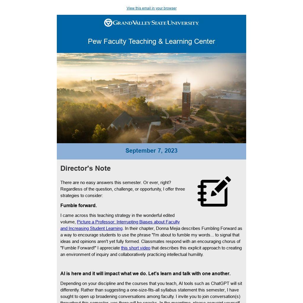 - Faculty can absolutely influence the likelihood of student utilizing a campus support resource. Step one: Familiarize yourself with the array of available support resources at GVSU. I recommend bookmarking this site and then taking even a few minutes of class time to talk to talk about a resource, explaining its purpose and promoting its use. Additionally, the Pace Initiative for Connecting Mind and Health, ably led by Pew FTLC Faculty Fellow, Patty Bolea, has assembled a host of teaching-focused suggestions and resources: Supporting Student Health and Mental Health at GVSU. Part of what I find so exciting about the Pace Initiative is the way in which faculty and staff are partnering across departments around such a pressing issue. There is so much great work taking place on this campus and much for us all to learn about one another's work.