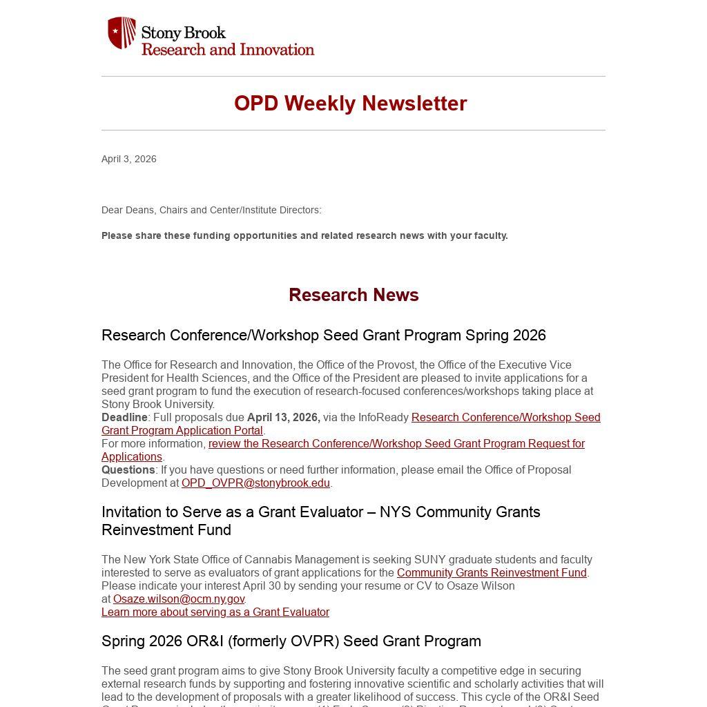 Questions: If you have questions or need further information, please email the Office of Proposal Development at OPD_OVPR@stonybrook.edu.