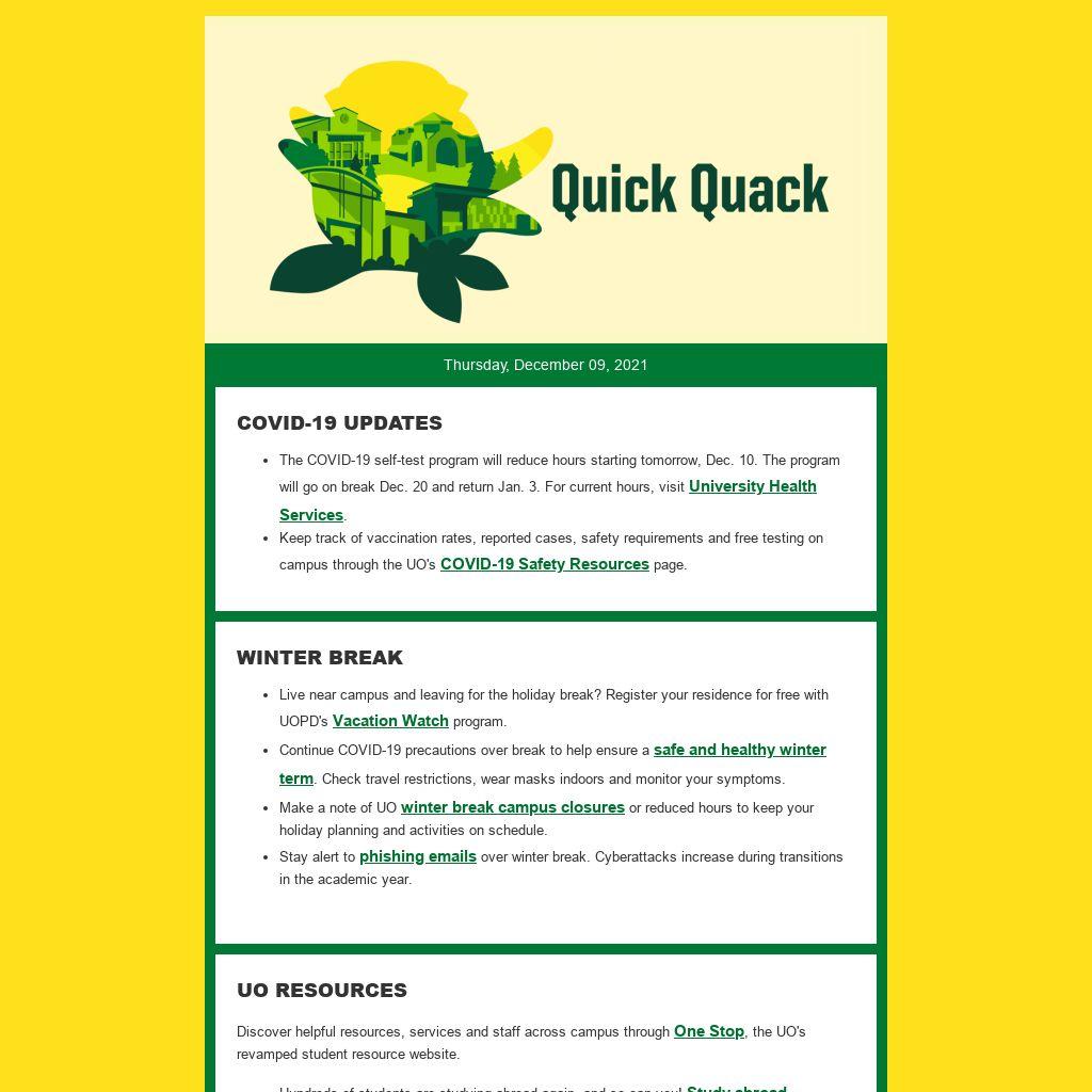 Have a great break! Quick Quack will return with another newsletter Thursday, Jan. 6, 2022.