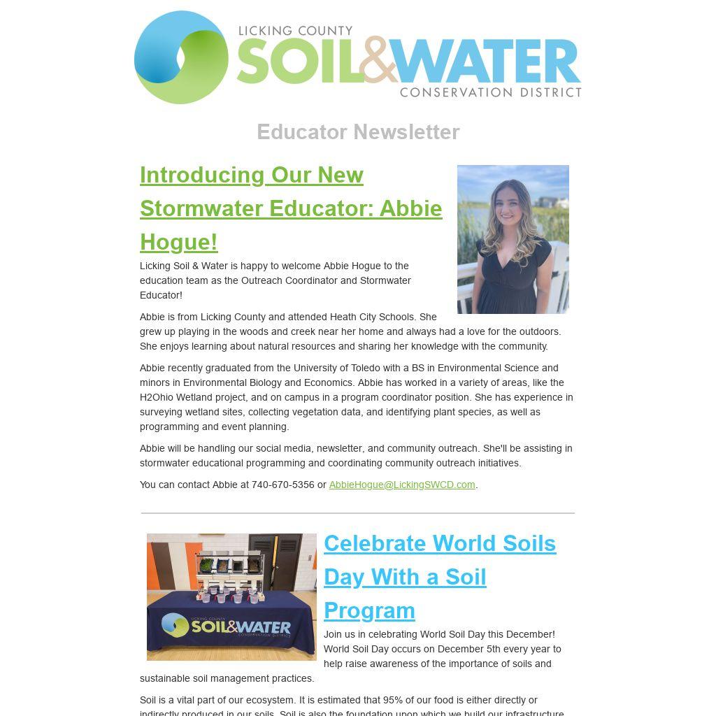 Licking Soil & Water is happy to welcome Abbie Hogue to the education team as the Outreach Coordinator and Stormwater Educator!