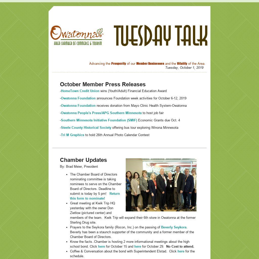 sschultz@owatonna.org. In case of inclement weather, a rain date of October 17th is scheduled.