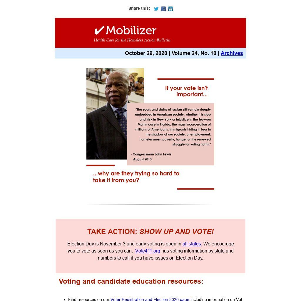 Election Day is November 3 and early voting is open in all states. We encourage you to vote as soon as you can. Vote411.org has voting information by state and numbers to call if you have issues on Election Day.