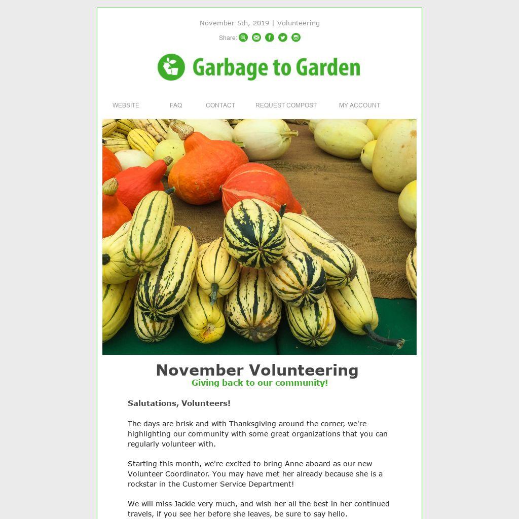 As always, to sign up for a volunteer shift this month and receive a month of free Garbage to Garden service, RSVP by email, and we will help answer any questions you may have. Remember, events are first-come, first-serve.