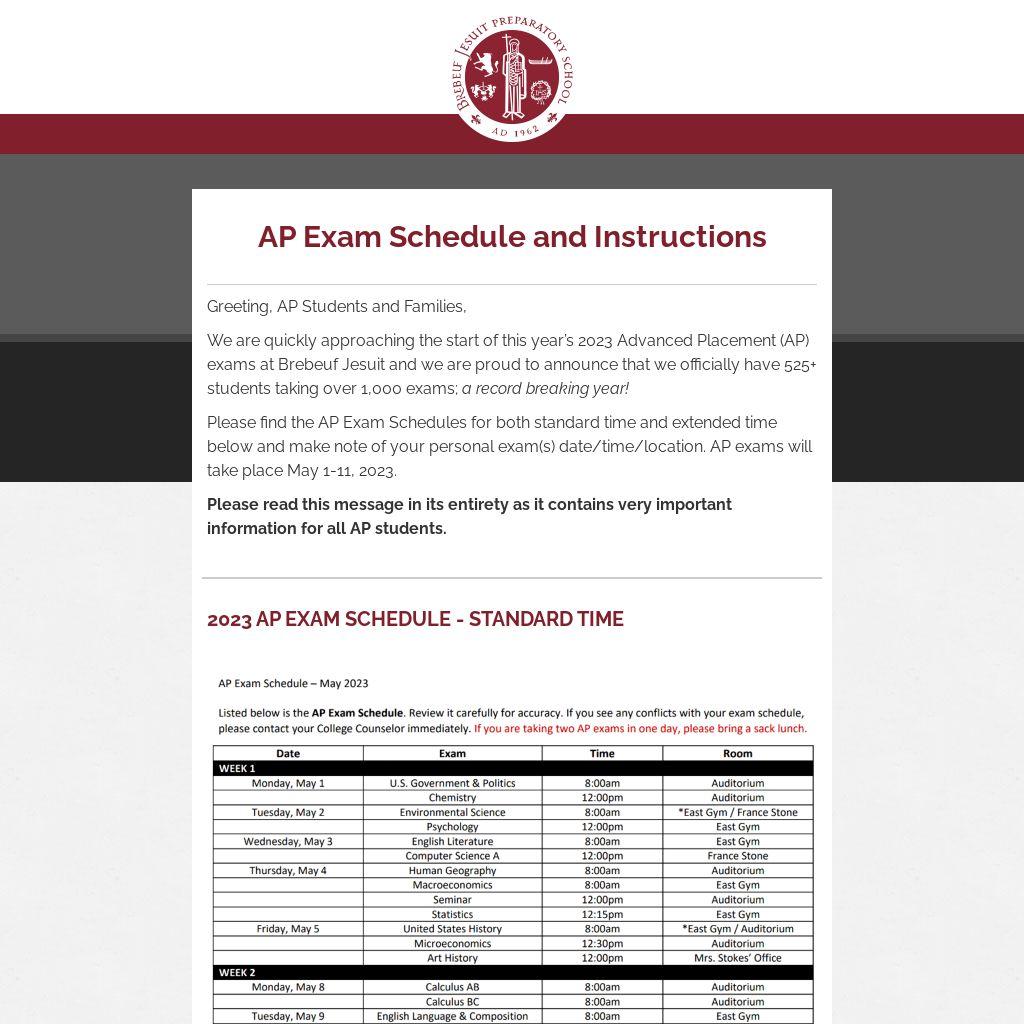 Notify your parents/guardians, teachers, coaches, and employers of your AP exam date(s). It is possible that your AP exam(s) will extend beyond the regular school day. Please understand that students will not be dismissed from an exam early for any reason, including, but not limited to, work-related obligations, athletic/performing arts practice, games, competitions, and medical appointments.