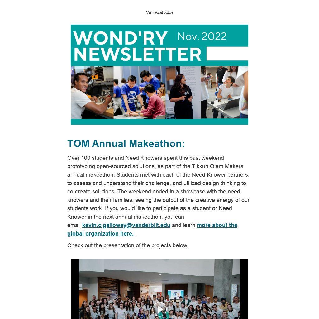 The Wond’ry, Vanderbilt’s Innovation Center is launching a new Climate Innovation Accelerator this February that engages exclusively minority-owned small businesses or nonprofits. This 10 week, no-cost, executive education opportunity provides business owners an nonprofits an opportunity to gain insights from a corporate mentor with sustainability expertise and a student team dedicated to providing research and analysis for innovative opportunities that advance future-fit business and sustainability goals.