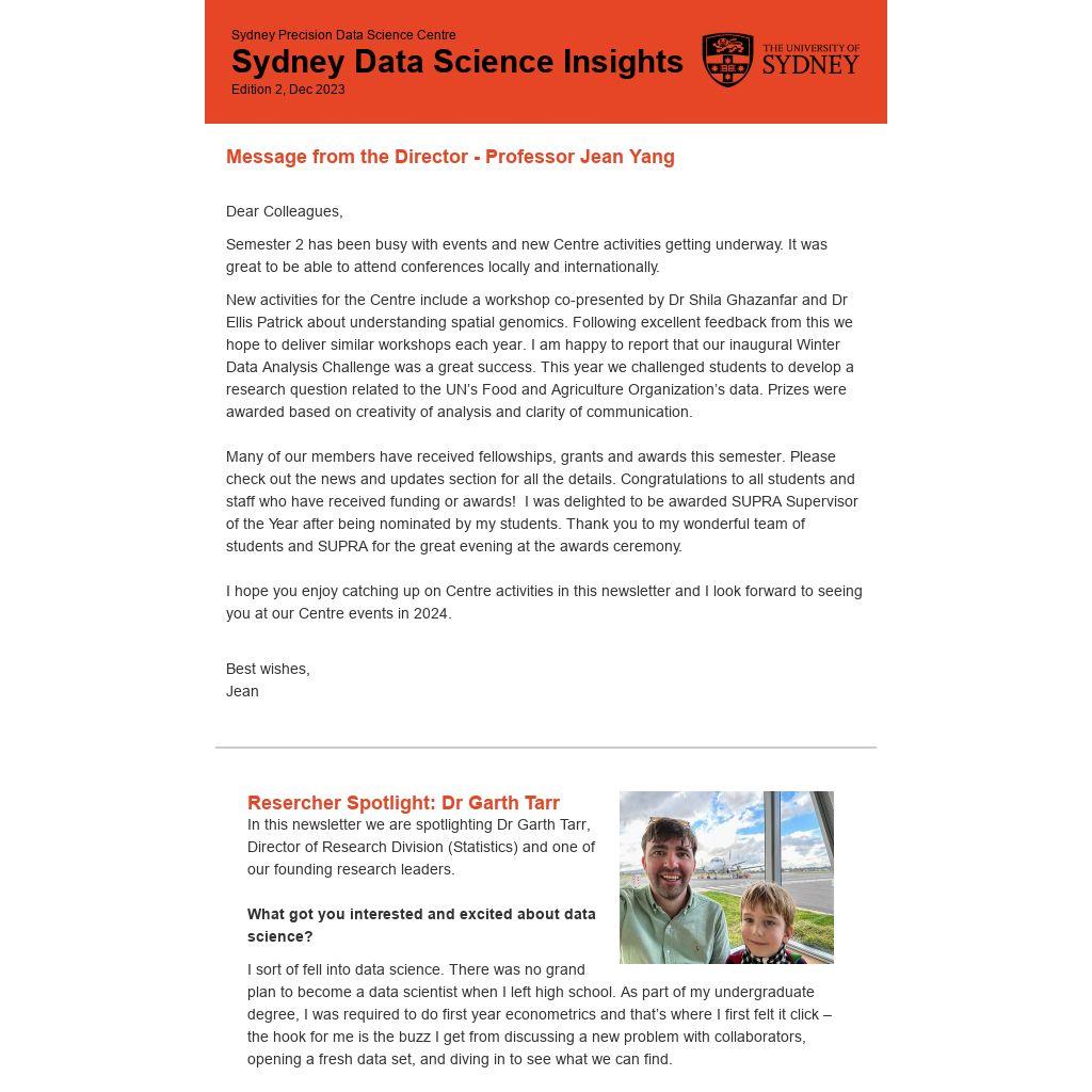 In this newsletter we are spotlighting Dr Garth Tarr, Director of Research Division (Statistics) and one of our founding research leaders.