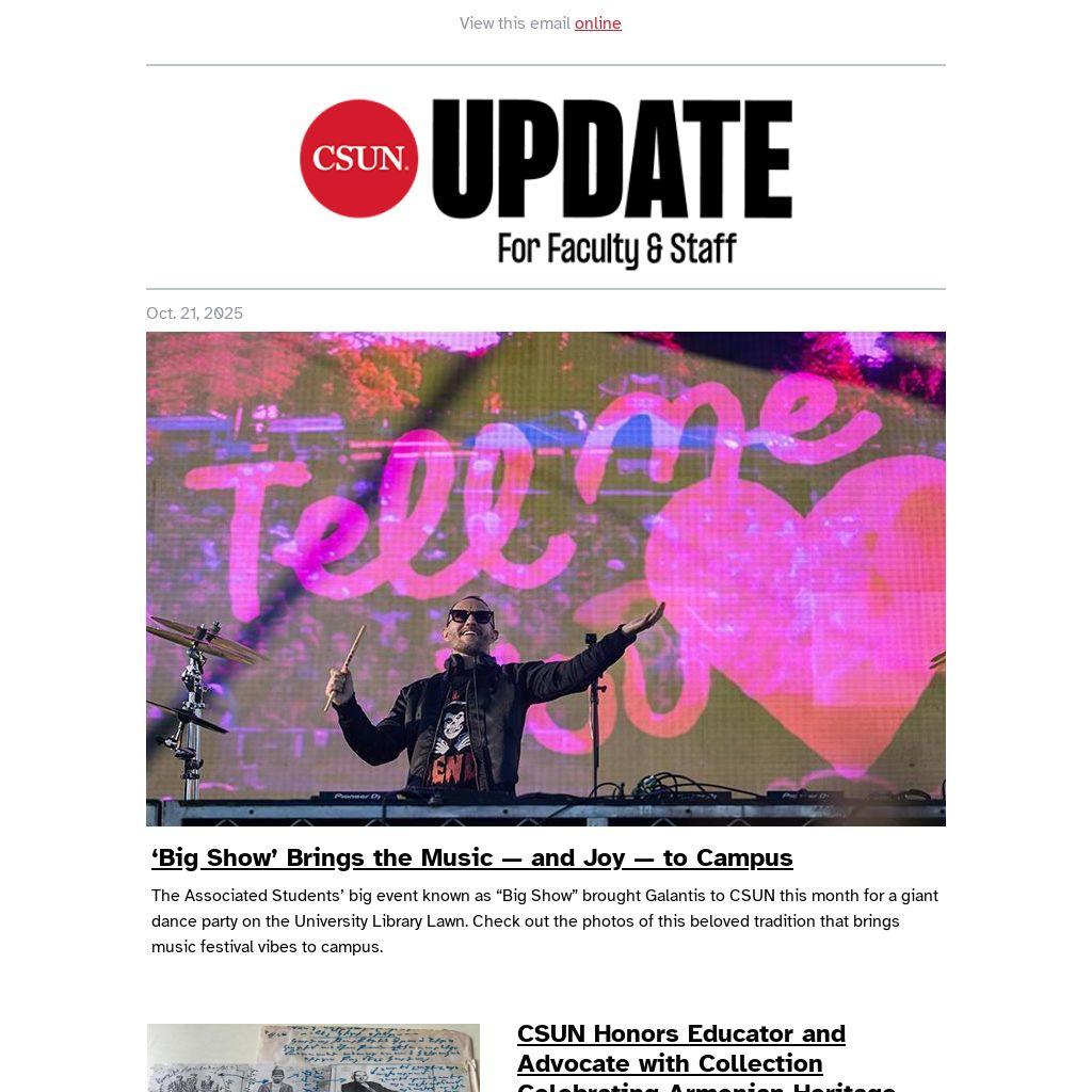 Please take a few minutes to share your thoughts on CSUN Update—what you love, what you’d like to see more of and how we can make our newsletter even better. Your feedback will help us deliver stories, events and news that matter most to the CSUN community.