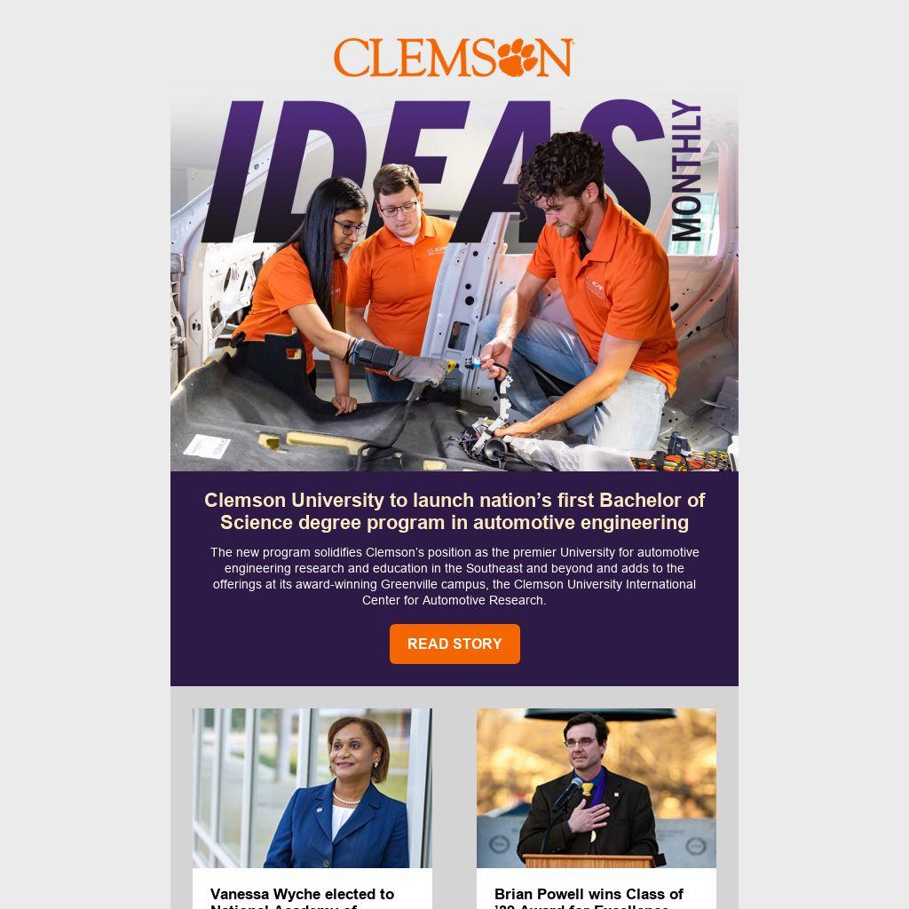 IDEAS Monthly is published by the PROMO Office in Clemson University’s College of Engineering, Computing and Applied Sciences. Contact the team with feedback or story suggestions.