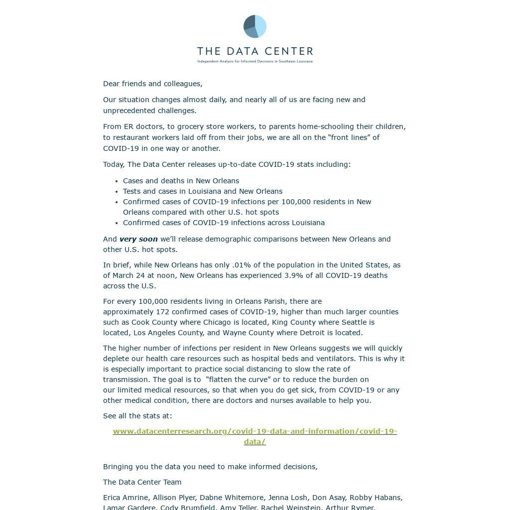 Today, The Data Center releases up-to-date COVID-19 stats including: