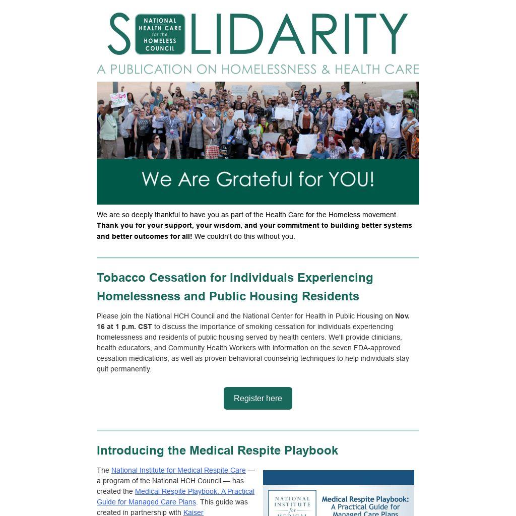 Please join the National HCH Council and the National Center for Health in Public Housing on Nov. 16 at 1 p.m. CST to discuss the importance of smoking cessation for individuals experiencing homelessness and residents of public housing served by health centers. We'll provide clinicians, health educators, and Community Health Workers with information on the seven FDA-approved cessation medications, as well as proven behavioral counseling techniques to help individuals stay quit permanently.
