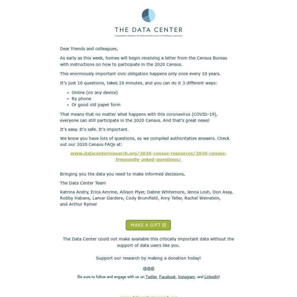 We know you have lots of questions, so we compiled authoritative answers. Check out our 2020 Census FAQs at: