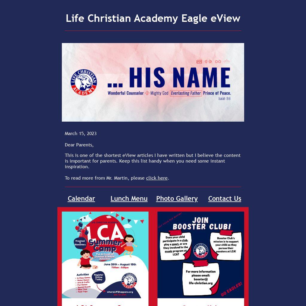 If your child will be absent due to illness, or other planned events, please contact us at attendance@life-christian.org so we can update their attendance record and notify their teachers. If you have any questions, please reach out, we would love to help!
