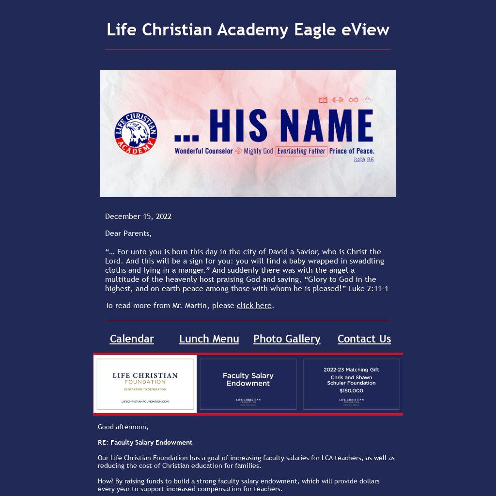 Life Christian Academy Eagle eView |