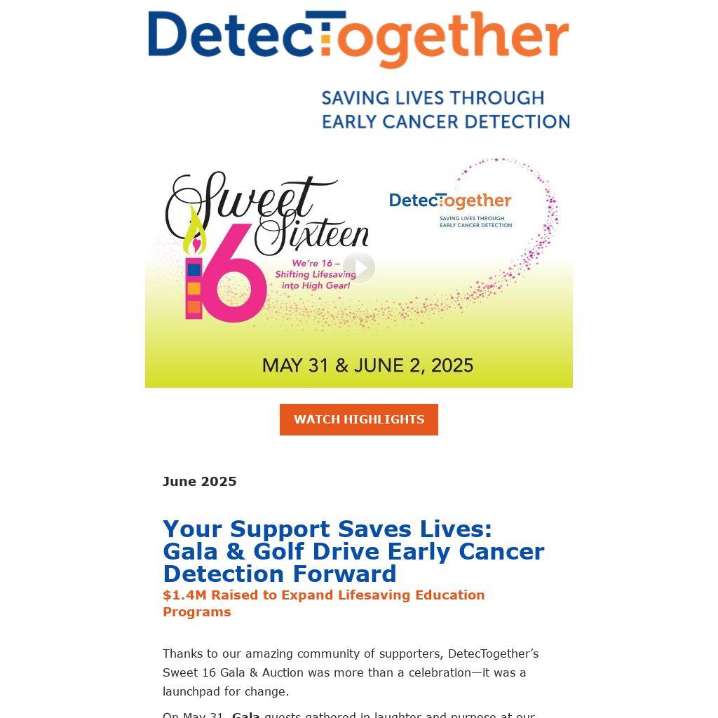 Your Support Saves Lives: Gala & Golf Drive Early Cancer Detection Forward$1.4M Raised to Expand Lifesaving Education Programs