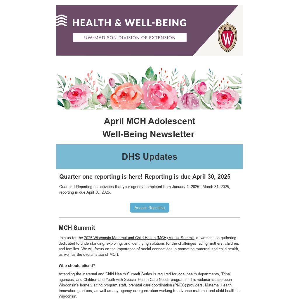 | April MCH Adolescent Well-Being Newsletter