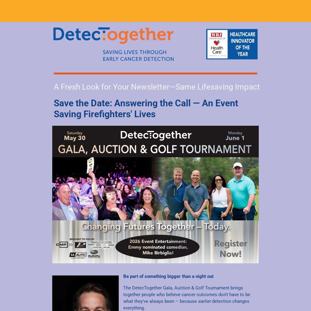 Early detection isn’t luck – it’s a strategy. And it's one everyone needs, and the importance of this earned DetecTogether recognition as Healthcare Innovator of the Year. DetecTogether is the only organization teaching firefighters early detection skills –helping people understand their powerful role in early cancer detection and how to partner with healthcare providers to get the best care – so people can help doctors help them.