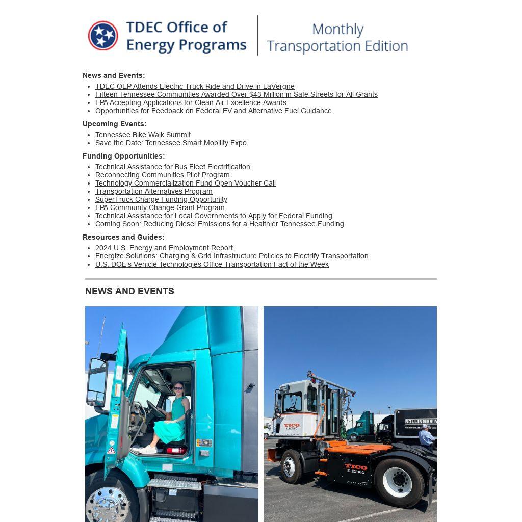 U.S. Department of Transportation recently announced over $1 billion in grants through the Safe Streets and Roads for All Program, including 15 recipients in Tennessee with awards totaling over $43 million. Three communities – the cities of Memphis, Knoxville, and Clarksville – won grants to support multiple infrastructure and intersection improvements. Twelve more communities received planning and demonstration grants, including Germantown, Gibson County, Huntingdon, Hickman County, Dickson County, Smith County, Moore County-Lynchburg, Fentress County, Polk County, Knoxville's Community Development Corporation, Dandridge, and Mountain City. Additional information on selected projects is available here.