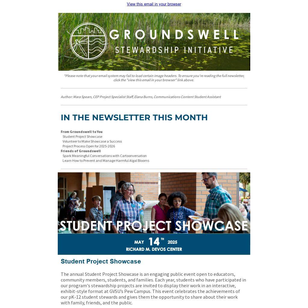 The annual Student Project Showcase is an engaging public event open to educators, community members, students, and families. Each year, students who have participated in our program's stewardship projects are invited to display their work in an interactive, exhibit-style format at GVSU’s Pew Campus. This event celebrates the achievements of our pK-12 student stewards and gives them the opportunity to share about their work with family, friends, and the public.Â