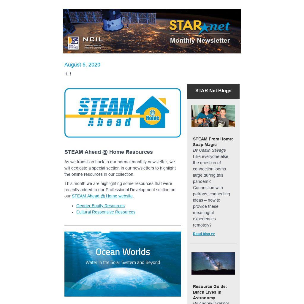 STAR Net is built upon a strong network of collaborators and partners, led by the Space Science Institute’s (SSI) National Center for Interactive Learning (NCIL). Partners include the American Library Association’s Public Programs Office, Collaborative Summer Library Program, Chief Officers of State Library Agencies, Lunar and Planetary Institute, Education Development Center, Twin Cities PBS (TPT), Institute for Learning Innovation (ILI), University of Colorado, University of Virginia, Urban Libraries Council, American Society of Civil Engineers, and Cornerstones of Science. Funding is provided by the National Science Foundation, NASA Science Mission Directorate, and the Institute of Museum and Library Services.