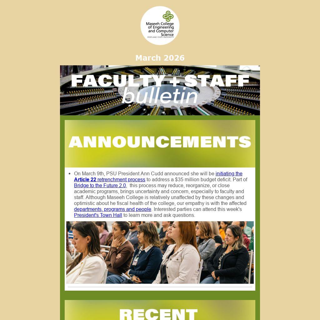 Commencement is somehow less than 100 days away! Save the date for Maseeh College's ceremony on June 14th from 6-7:30pm at Viking Pavilion. It's time once again to think about volunteering to help at the ceremony and the graduates we will feature.