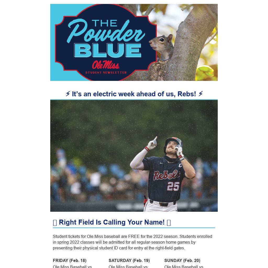 To contact us or submit content, events or announcements, email thepowderblue@olemiss.edu. Interested in receiving this newsletter? Use this sign-up link to receive The Powder Blue in your inbox every Tuesday.
