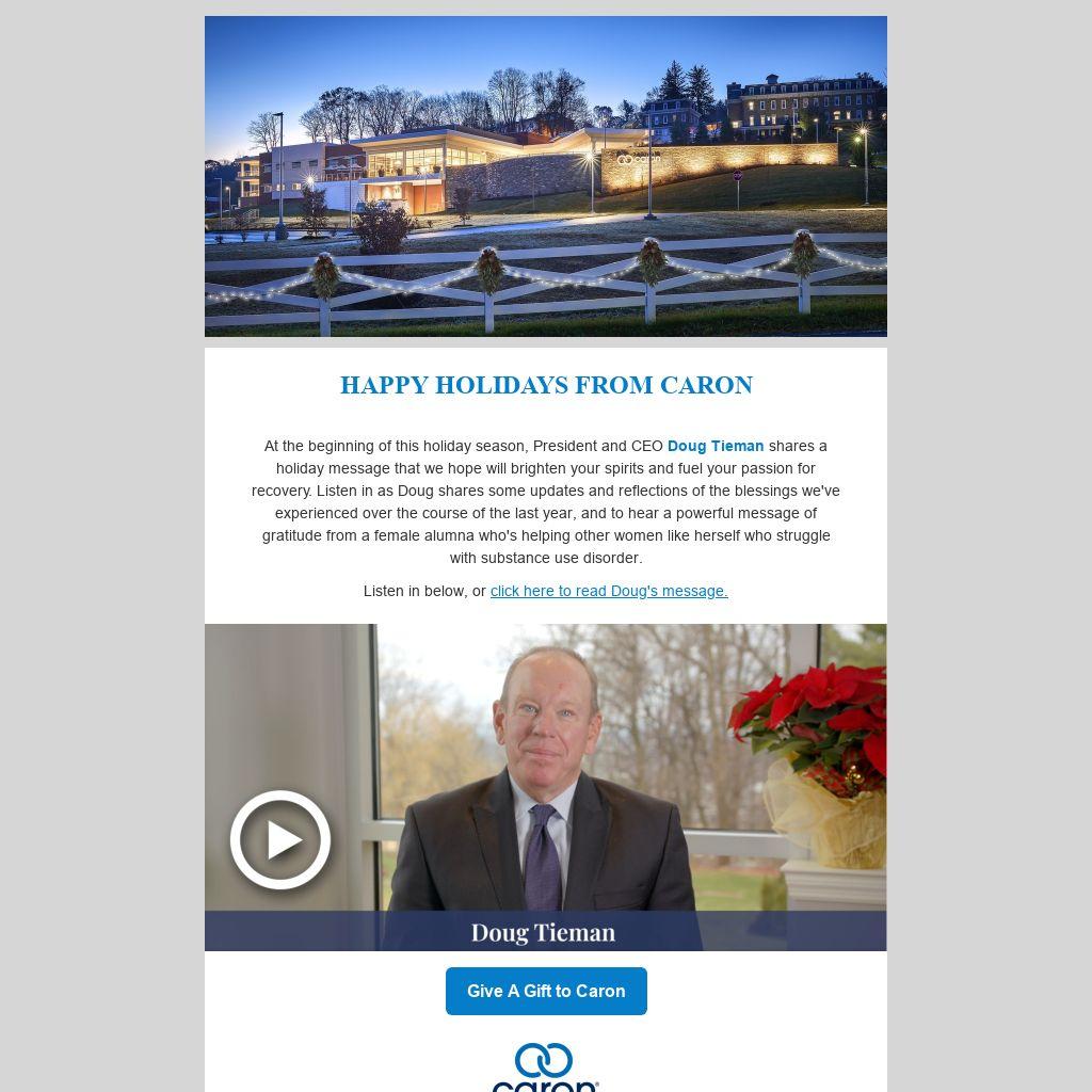 At the beginning of this holiday season, President and CEO Doug Tieman shares a holiday message that we hope will brighten your spirits and fuel your passion for recovery. Listen in as Doug shares some updates and reflections of the blessings we've experienced over the course of the last year, and to hear a powerful message of gratitude from a female alumna who's helping other women like herself who struggle with substance use disorder.