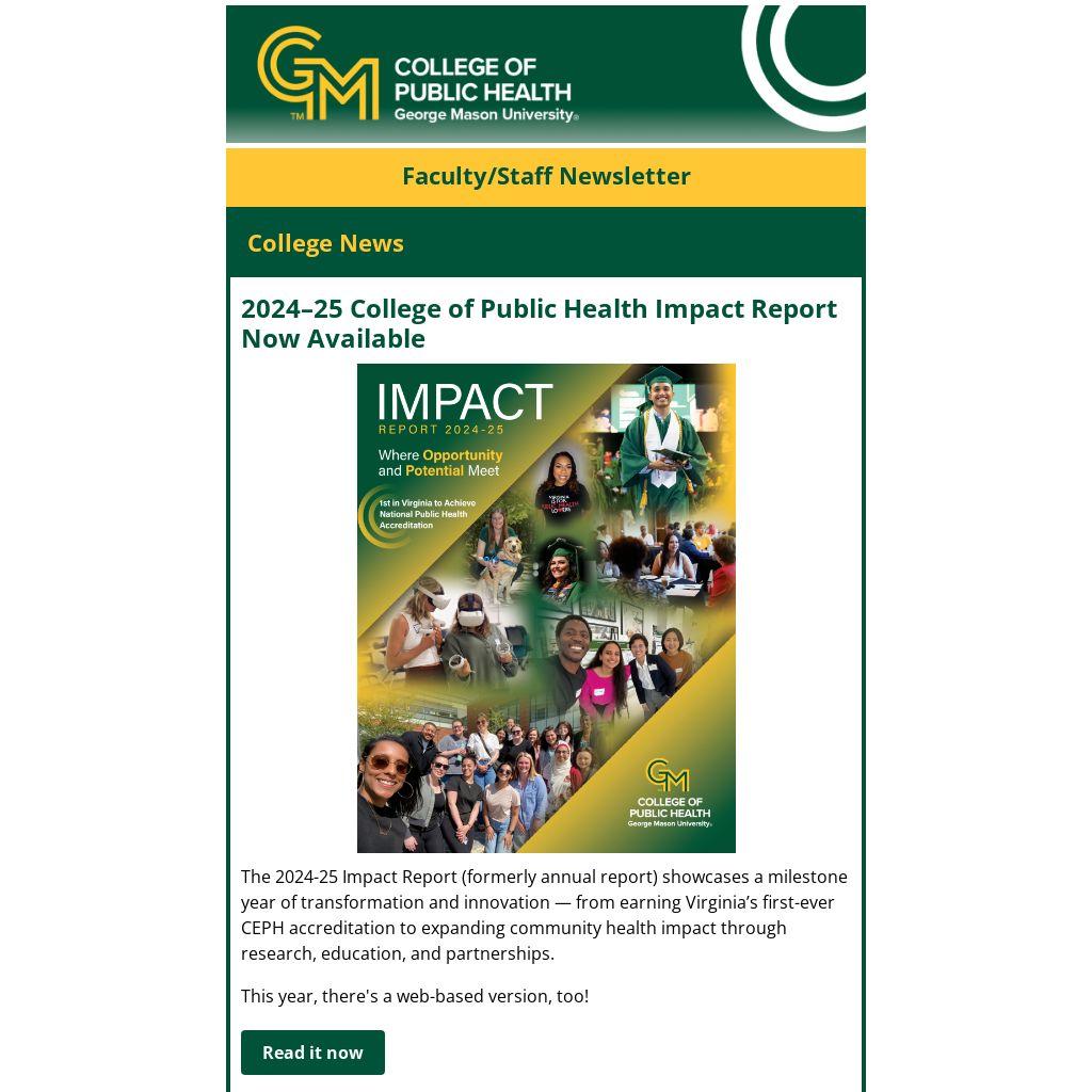 The 2024-25 Impact Report (formerly annual report) showcases a milestone year of transformation and innovation — from earning Virginia’s first-ever CEPH accreditation to expanding community health impact through research, education, and partnerships.