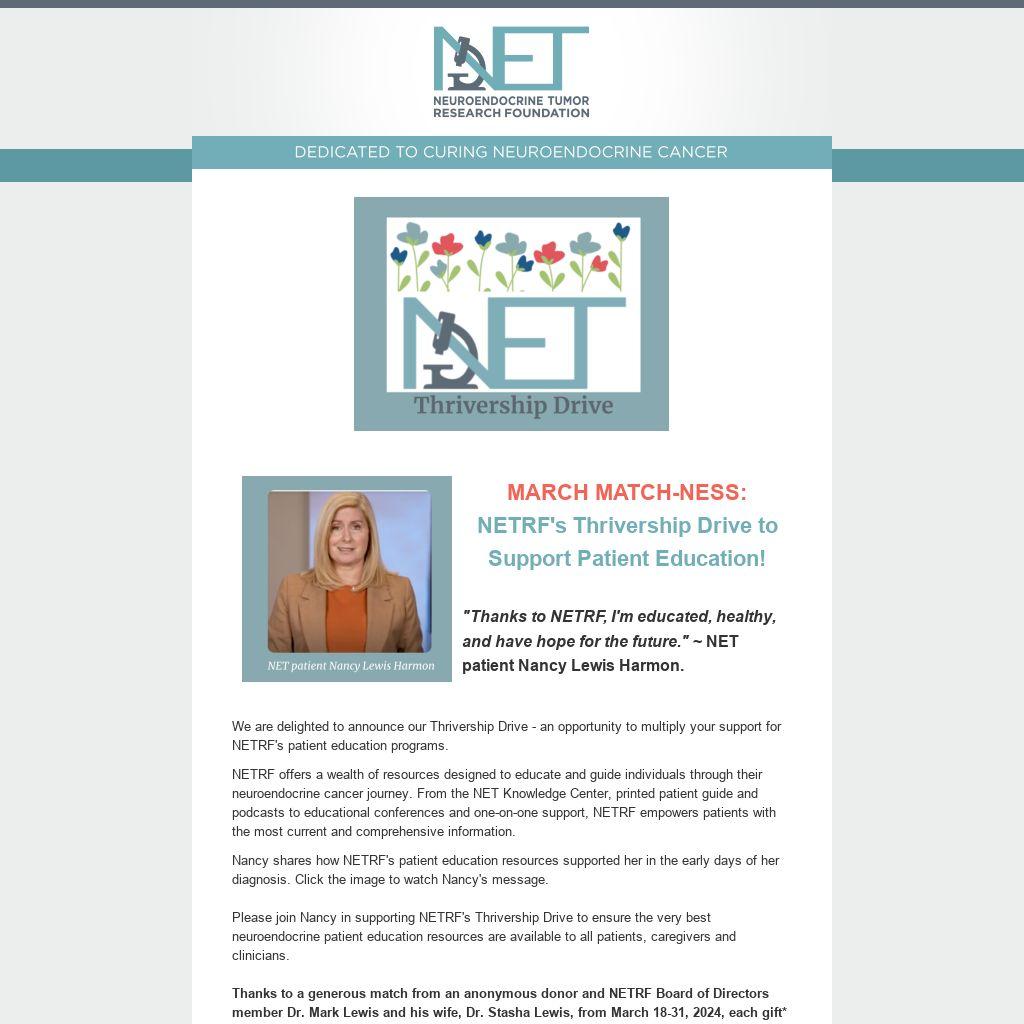 MARCH MATCH-NESS: NETRF's Thrivership Drive to Support Patient Education!