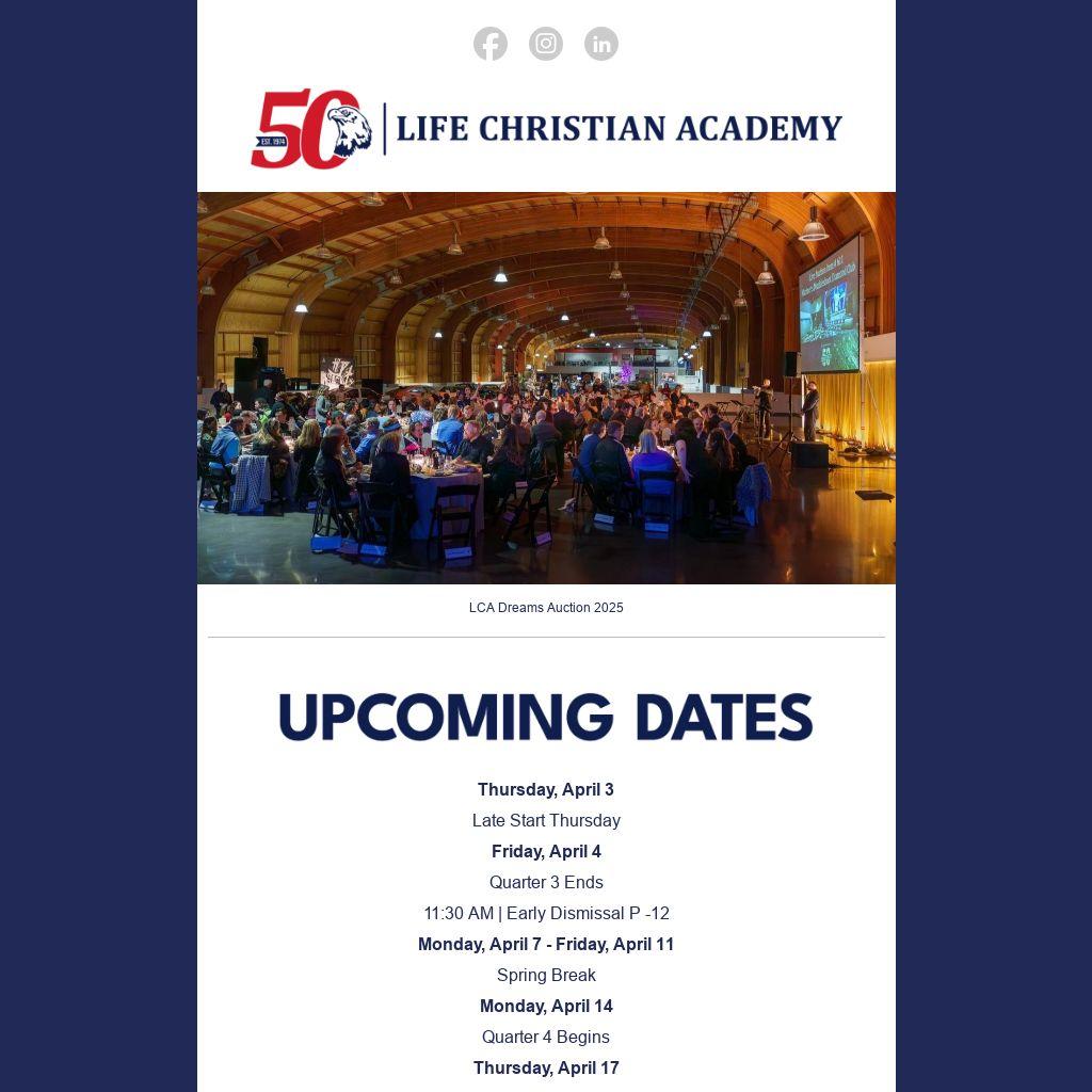 Life Christian Academy is excited to offer the SOAR Scholarship to eligible High School students, providing additional financial assistance beyond regular tuition assistance. This scholarship reflects our commitment to making Christ-centered education accessible for families of all backgrounds. Applications open today and close on Friday, April 18.