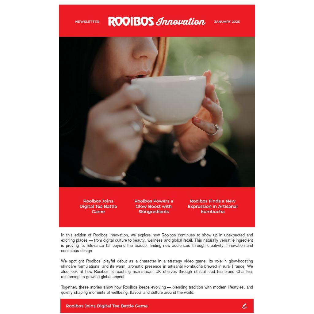 In this edition of Rooibos Innovation, we explore how Rooibos continues to show up in unexpected and exciting places — from digital culture to beauty, wellness and global retail. This naturally versatile ingredient is proving its relevance far beyond the teacup, finding new audiences through creativity, innovation and conscious design.