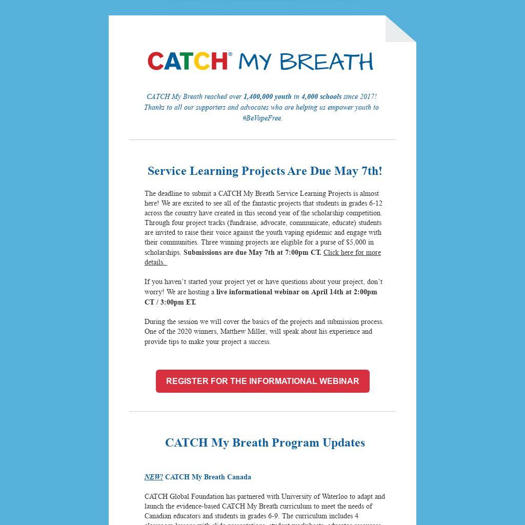 If your school is in Mississippi and you’d like to learn more about how you can get involved, send an email to catchmybreath@catch.org.