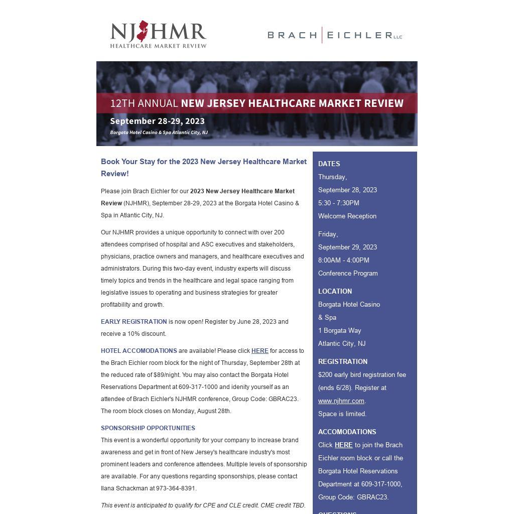Click HERE to join the Brach Eichler room block or call the Borgata Hotel Reservations Department at 609-317-1000, Group Code: GBRAC23.